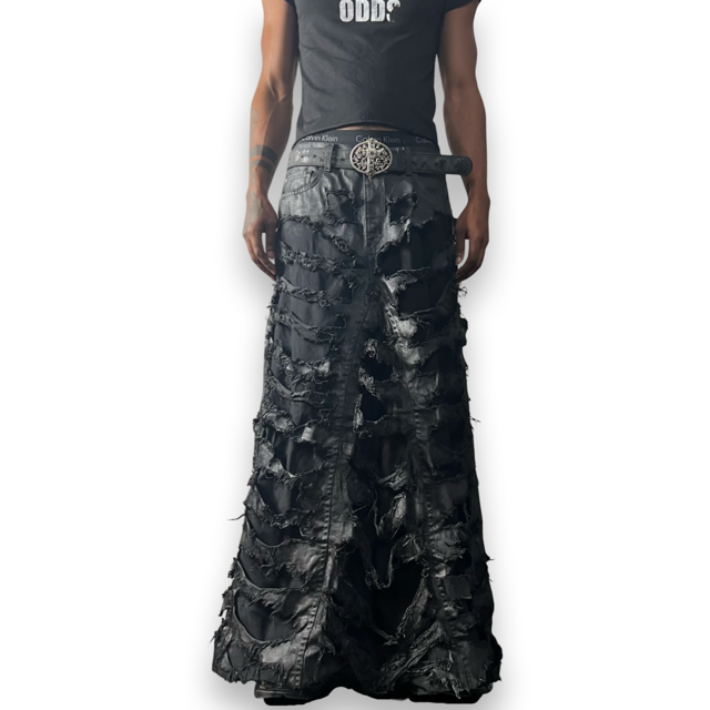 ***** This skirt has been hand distressed, hand wax coated and pre-washed, due to each piece being hand made imperfections will appear to add further uniqueness to each piece, denim also softens with wear******