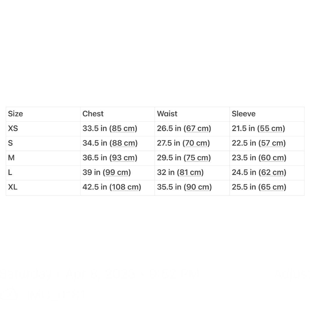 Order regular size for a cropped fit, size up for a more regular fit