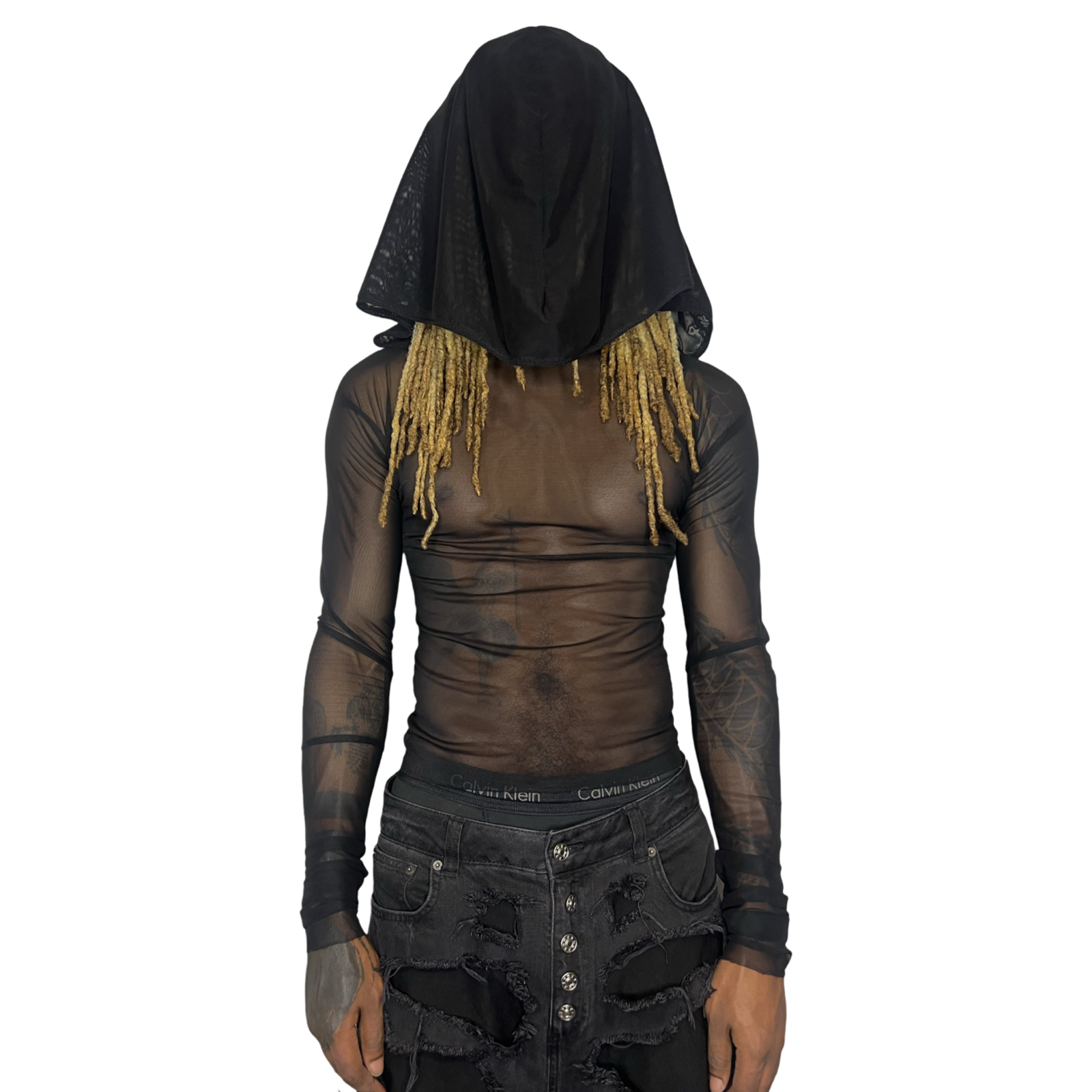 Hand cut & sewn mesh hooded long-sleeve so expect imperfections